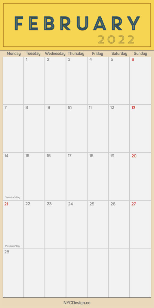 2022 Monthly Calendars – February 2022 Planner with US Holidays